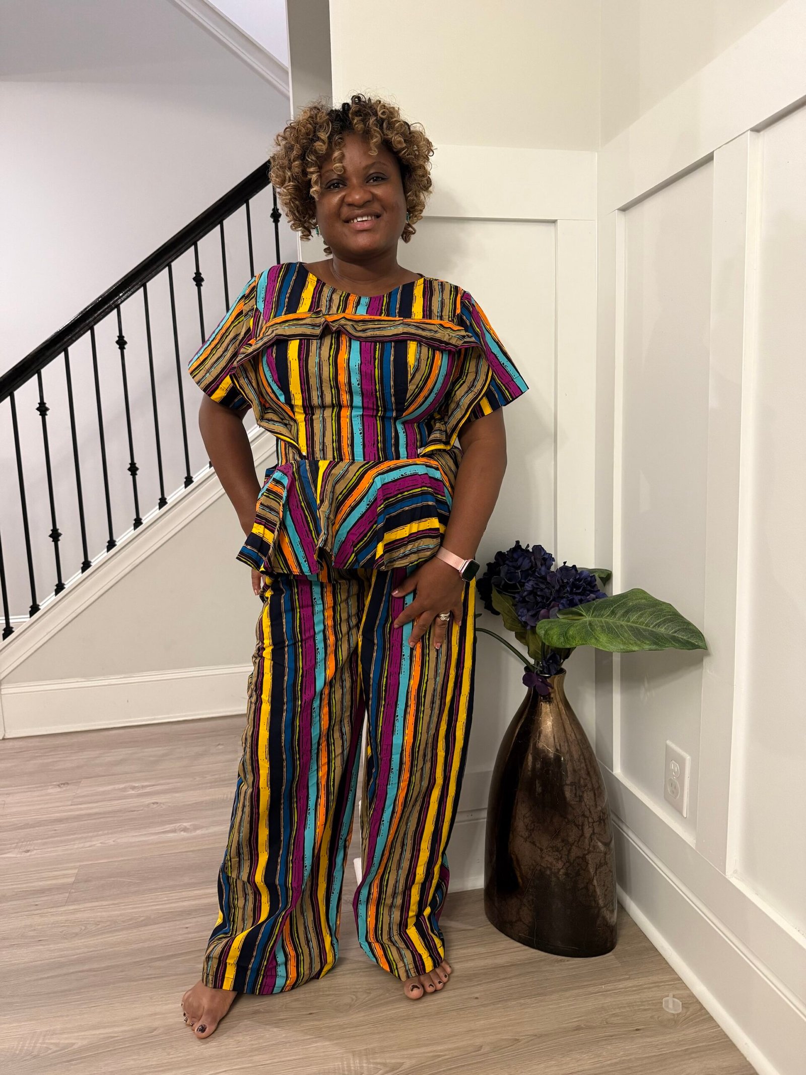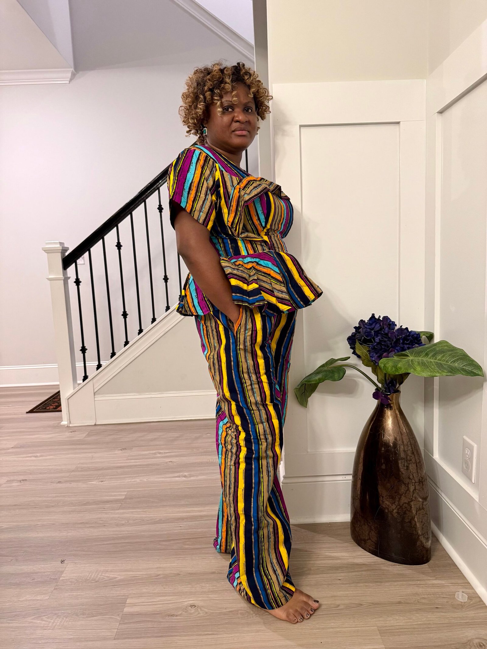 African Ankara Afro Kiara Stripped 2p Pant Set