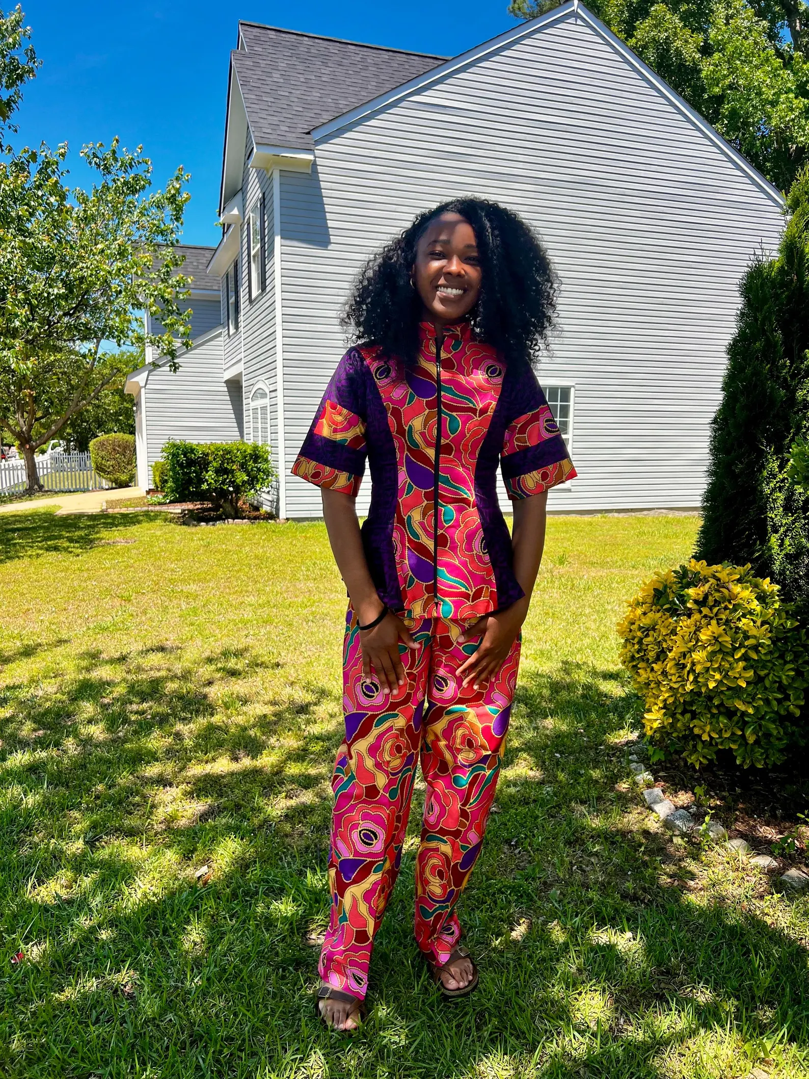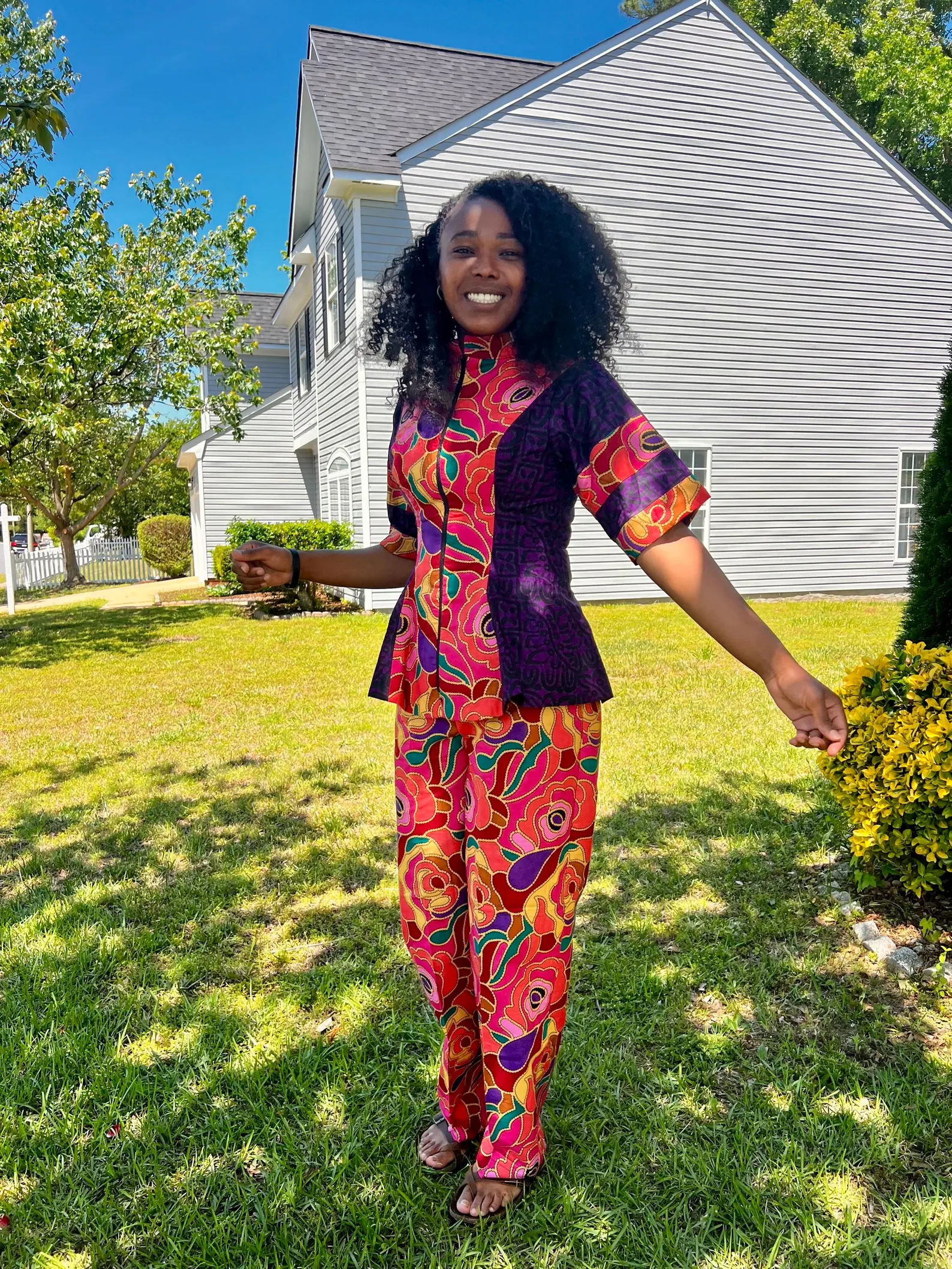 Be the first to review “African Ankara Print Floral Front Zip 2p Pant Set”