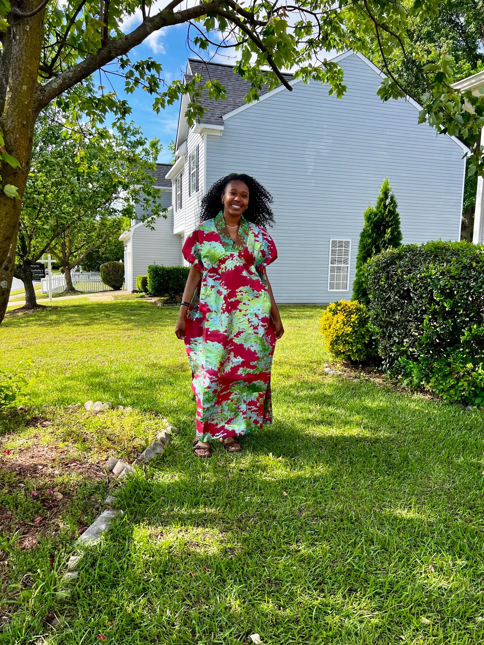 African Print Ankara Hand Beaded Short Bubu Maxi Dress