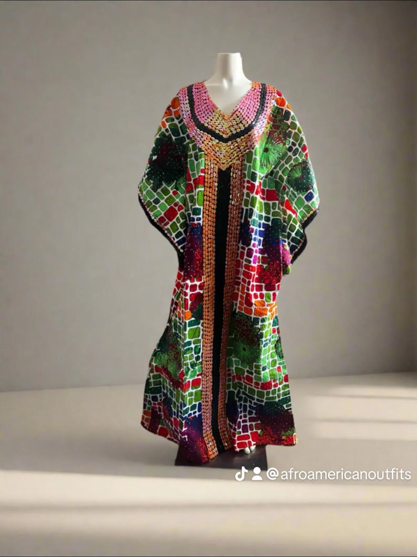 African Print Ankara Hand Beaded Bubu Maxi Dress