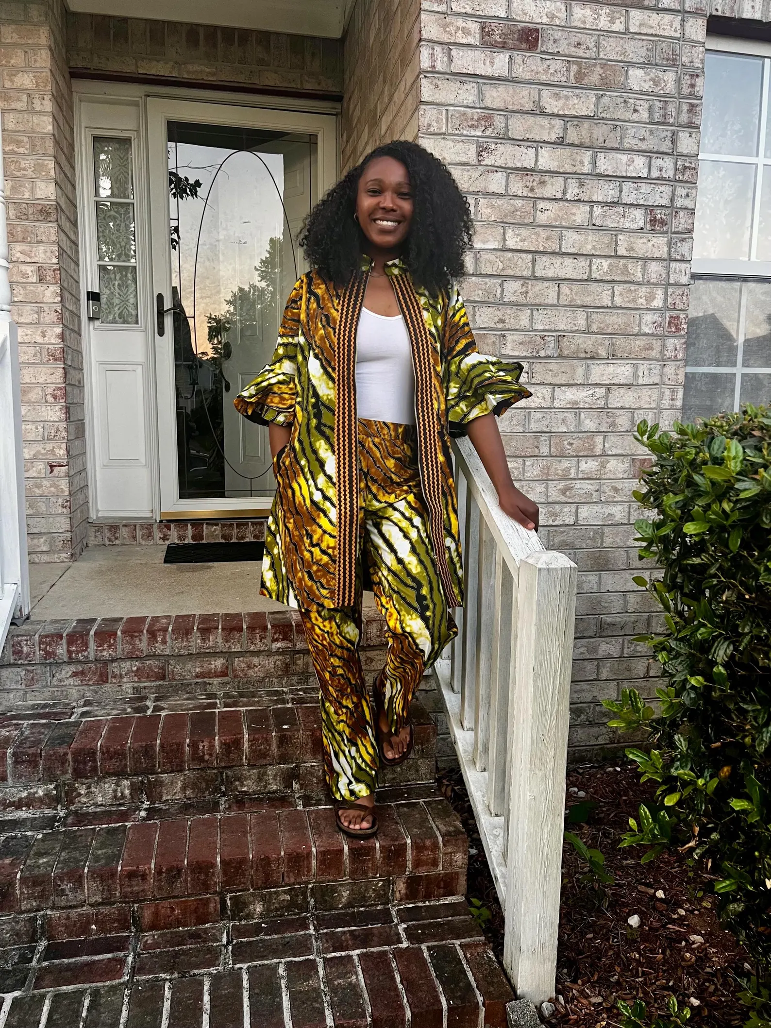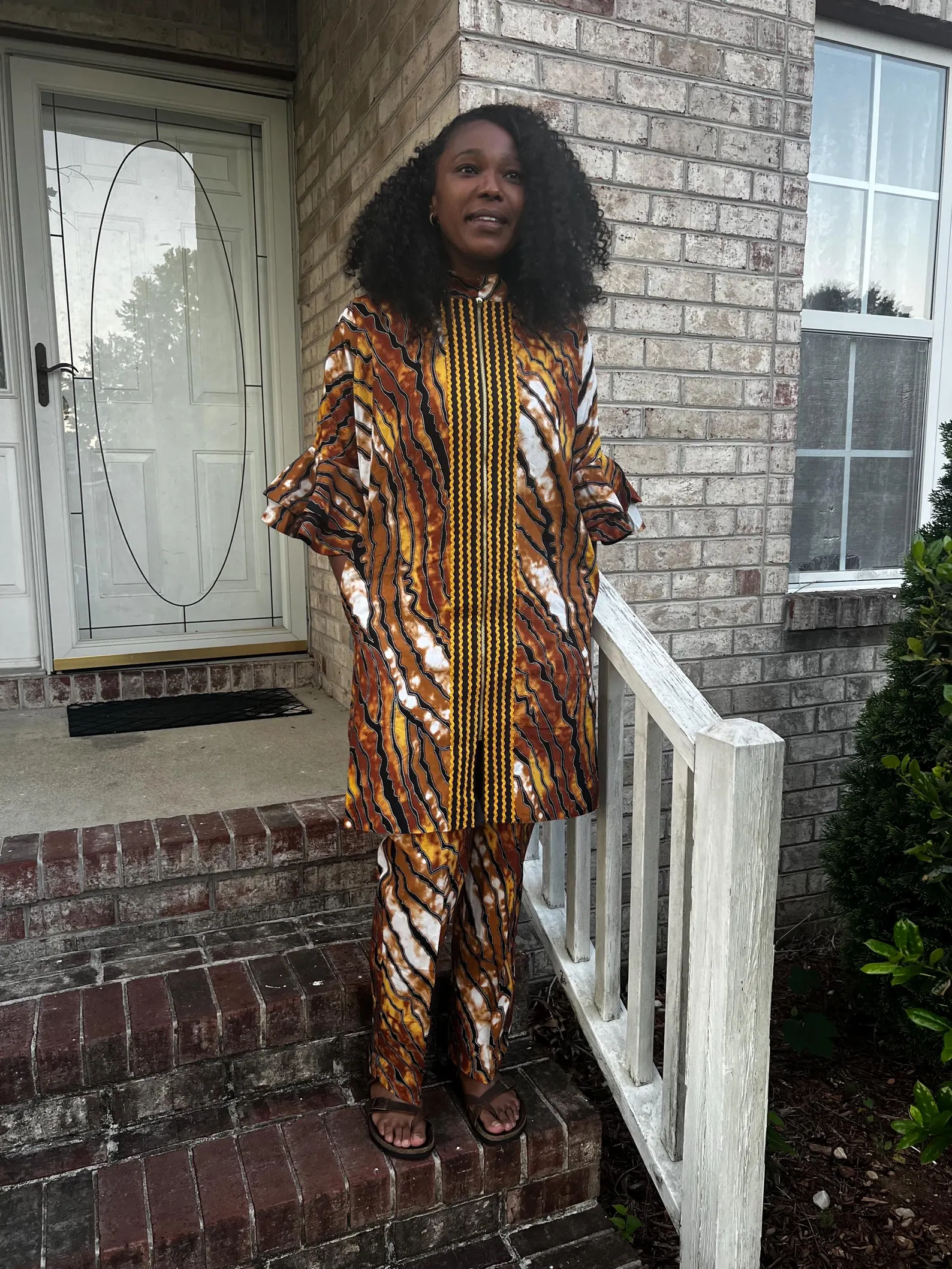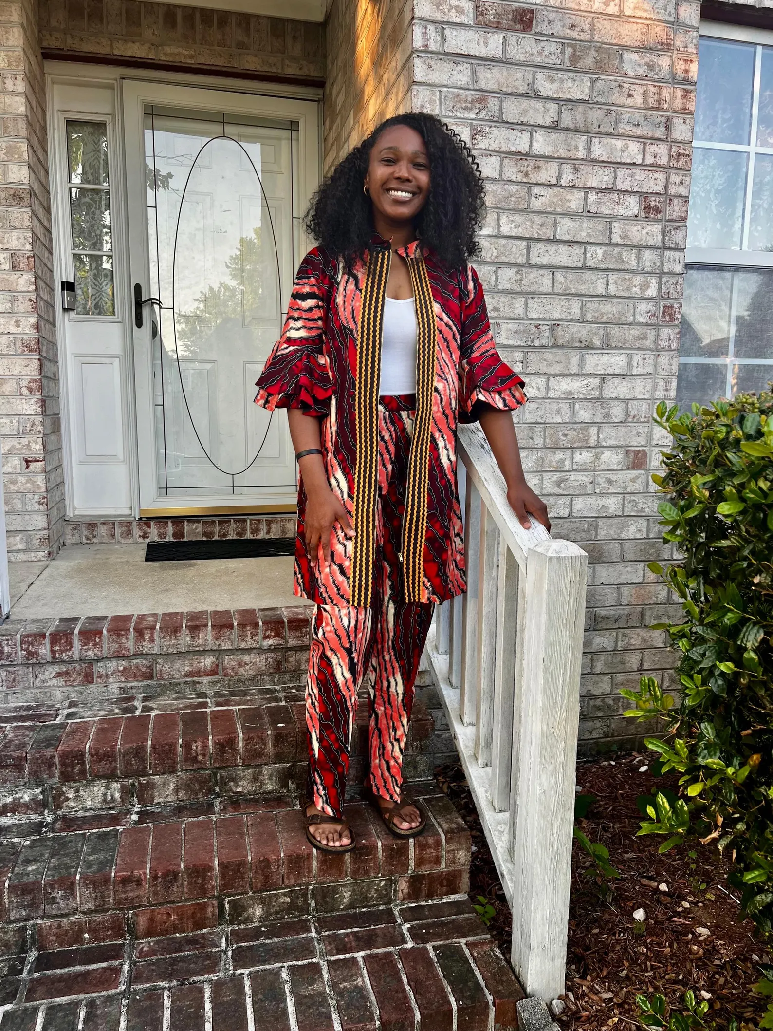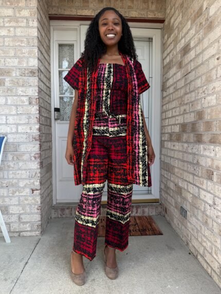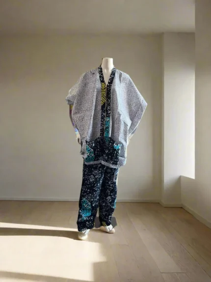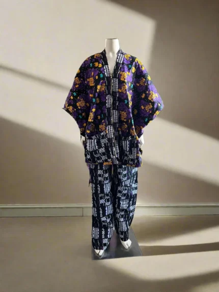 This colorful Kimono style zipper pant set is padded and fully lined with cotton material. A vibrant and eye-catching garment that showcases the rich cultural heritage and artistic traditions of Africa. This pant set features bold and intricate geometric patterns. The geometric design makes it unique. The use of 100% cotton ensures that the clothe is breathable, comfortable, and perfect for all weather. The pant is lined for comfort.