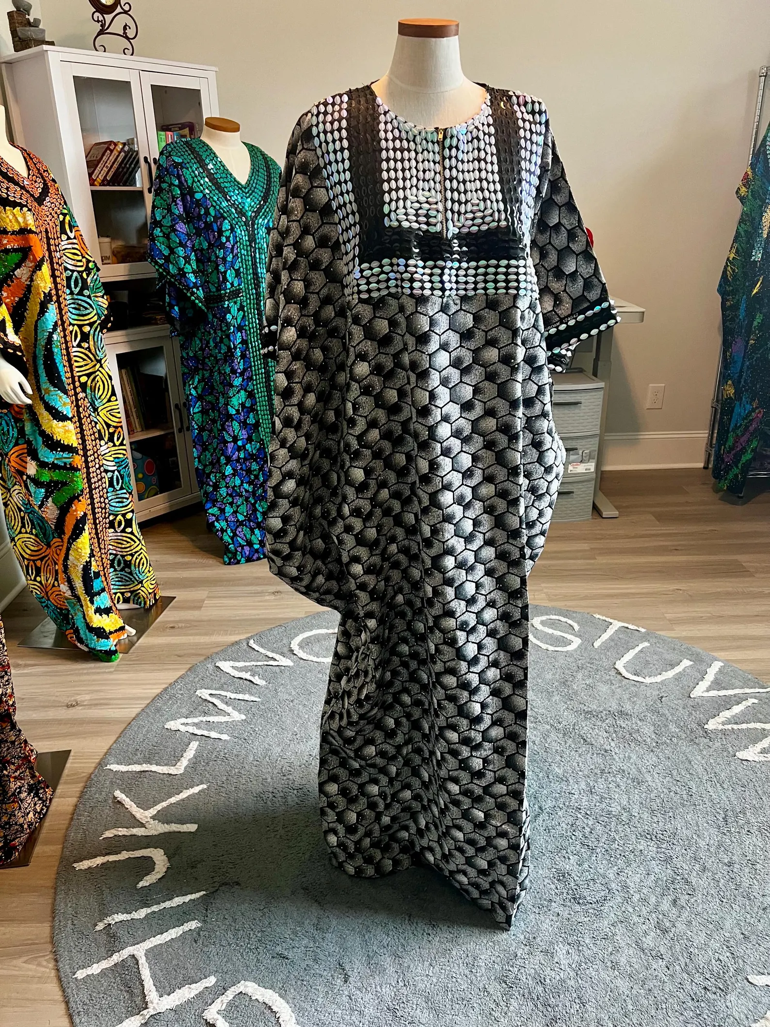 African Print Ankara Hand Beaded Bubu Maxi Dress