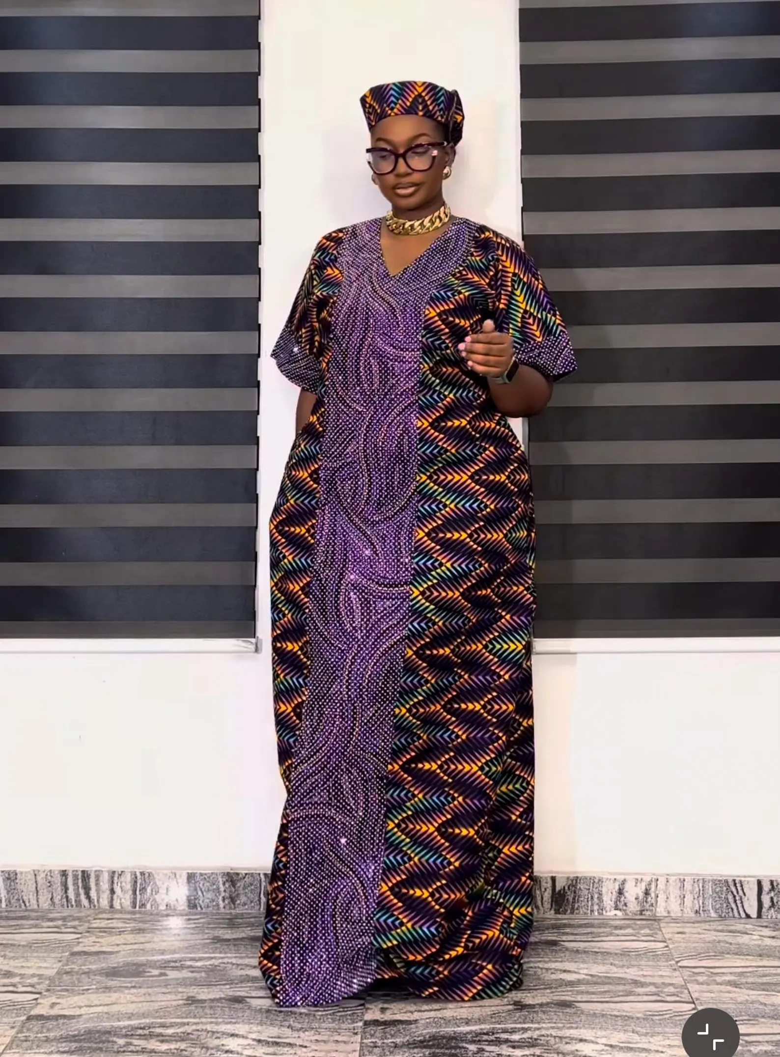 Beautiful Glittering Stone design African Ankara Print Kaftan/Dress