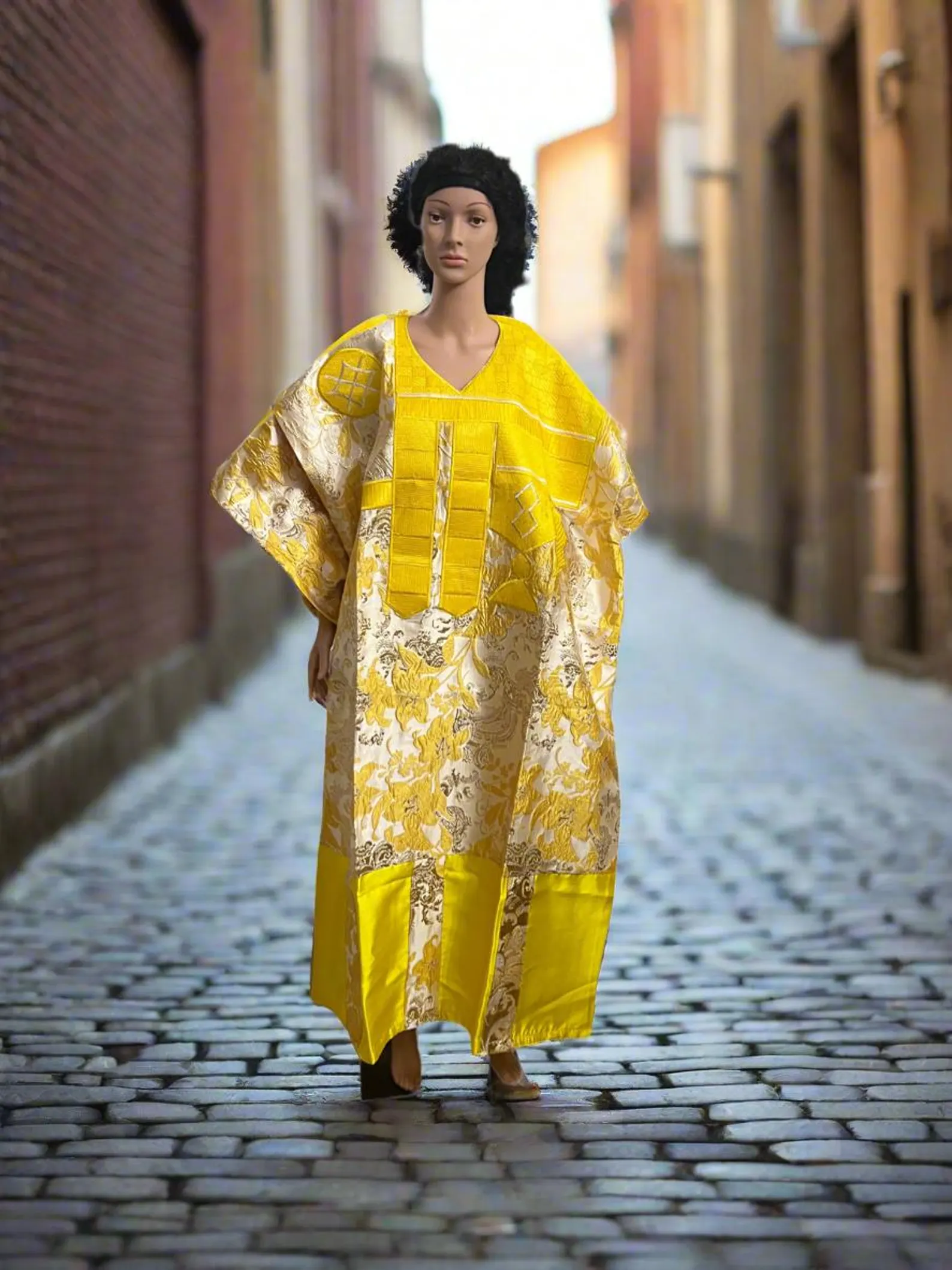 Luxury Gold African European Damask Brocade Bubu Maxi Dress Price range: $62.99 through $139.99Free shipping!