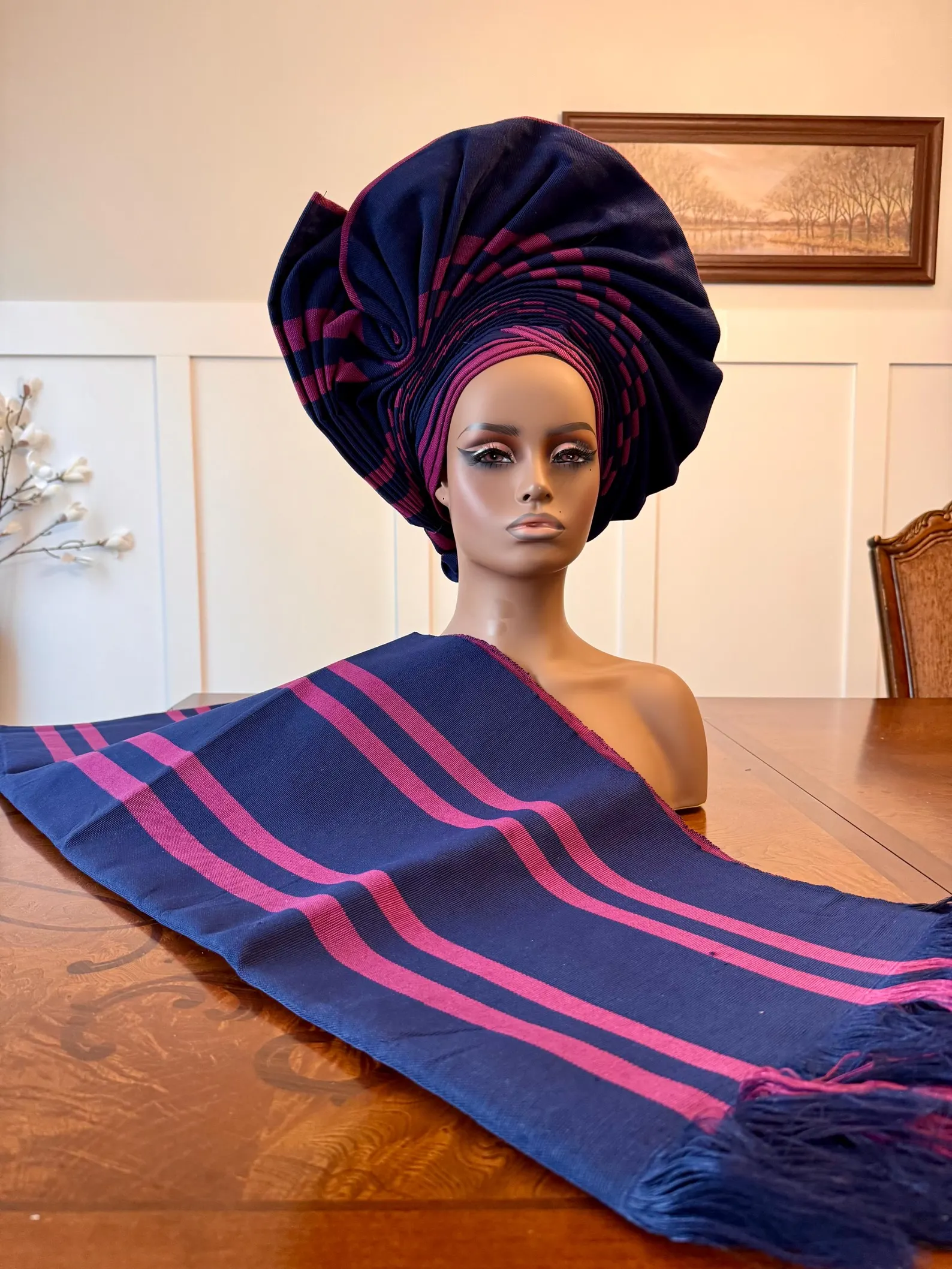 Traditional African Aso-Oke/Kente 2p Set Gele and Ipele