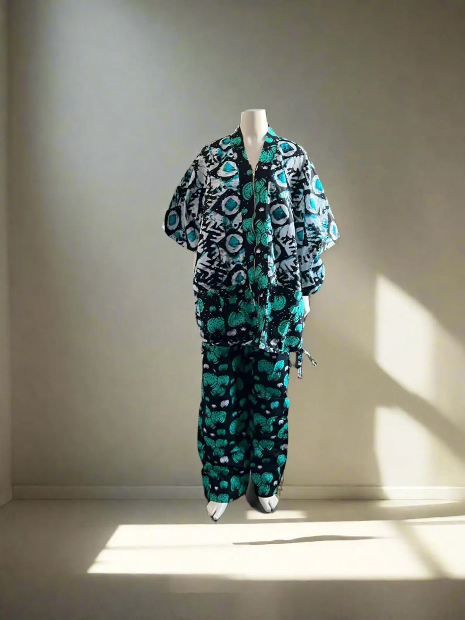 This colorful pant set is 100% cotton. A vibrant and eye-catching garment that showcases the rich cultural heritage and artistic traditions of Africa. This pant set features bold and intricate geometric patterns. The use of 100% cotton ensures that the dress is breathable, comfortable, and perfect for all weather. Some pants are lined for comfort.